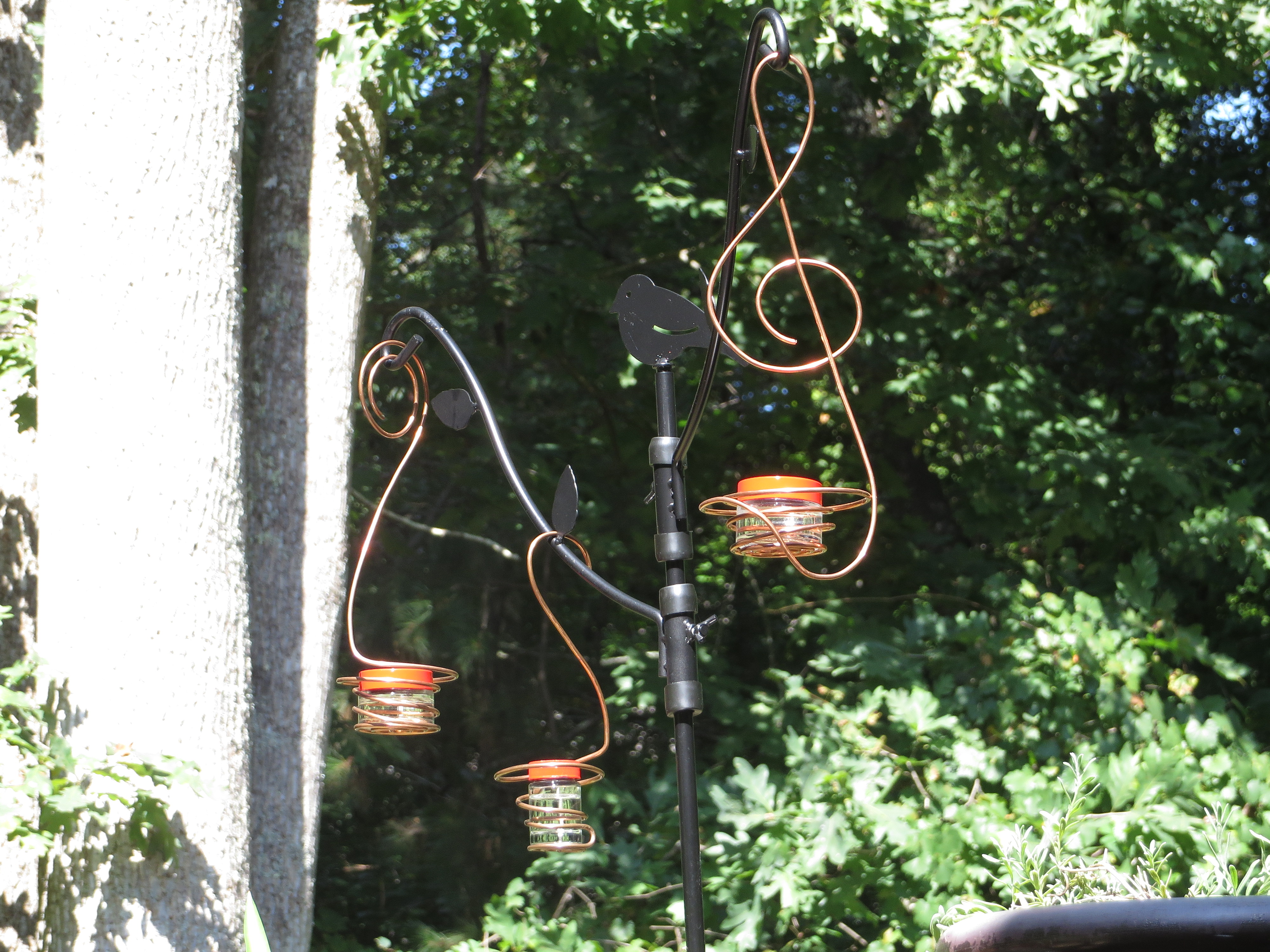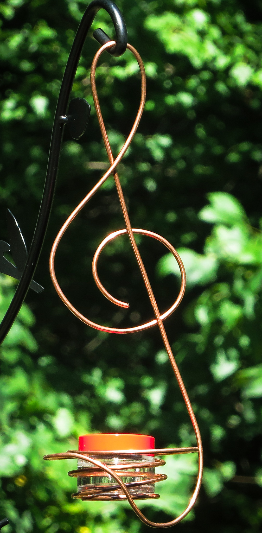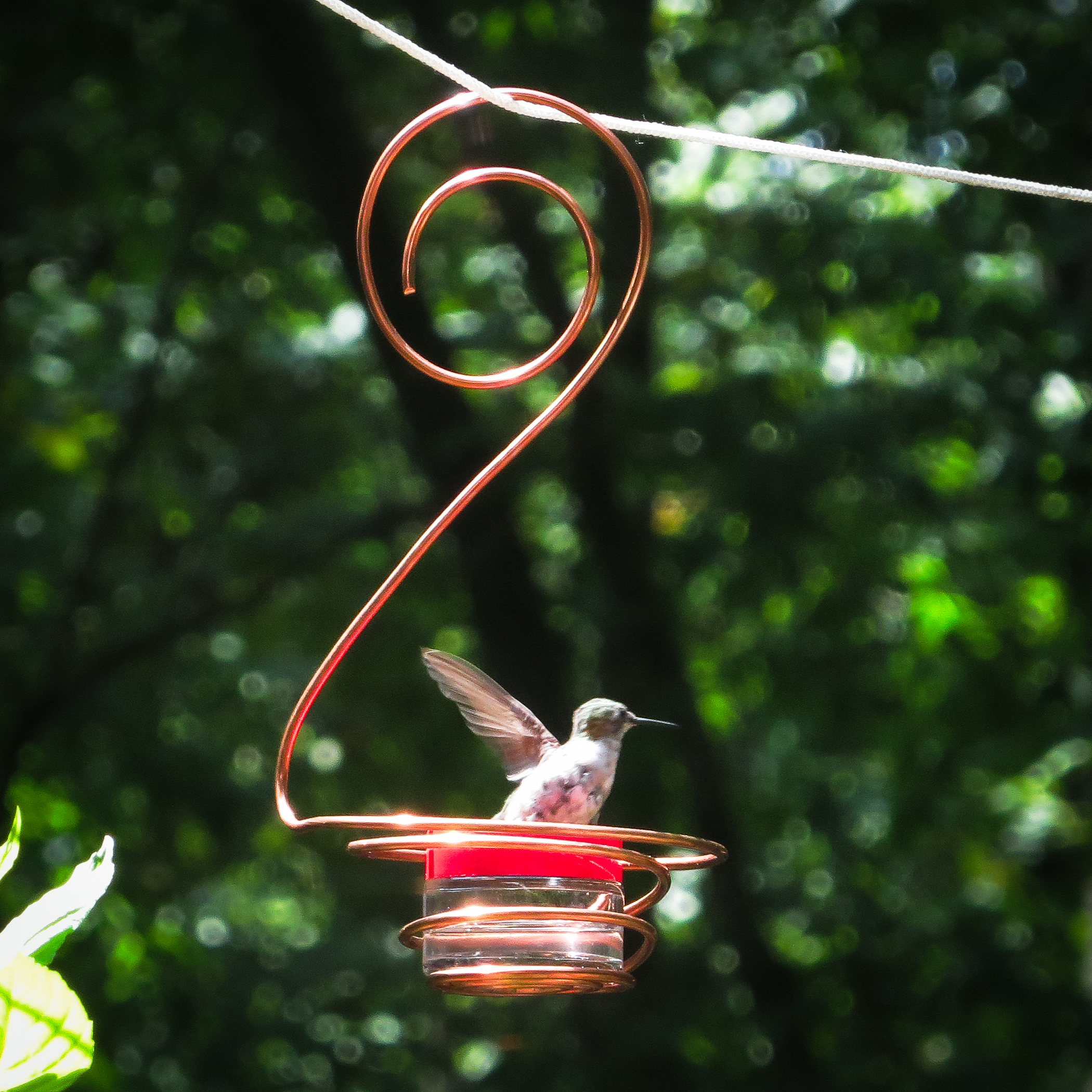 Enjoy the sparkle of glass and copper as your hummingbirds are fueling up.