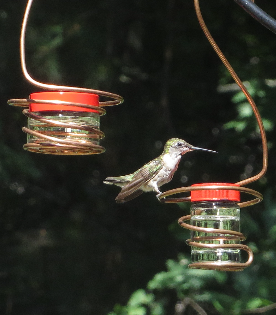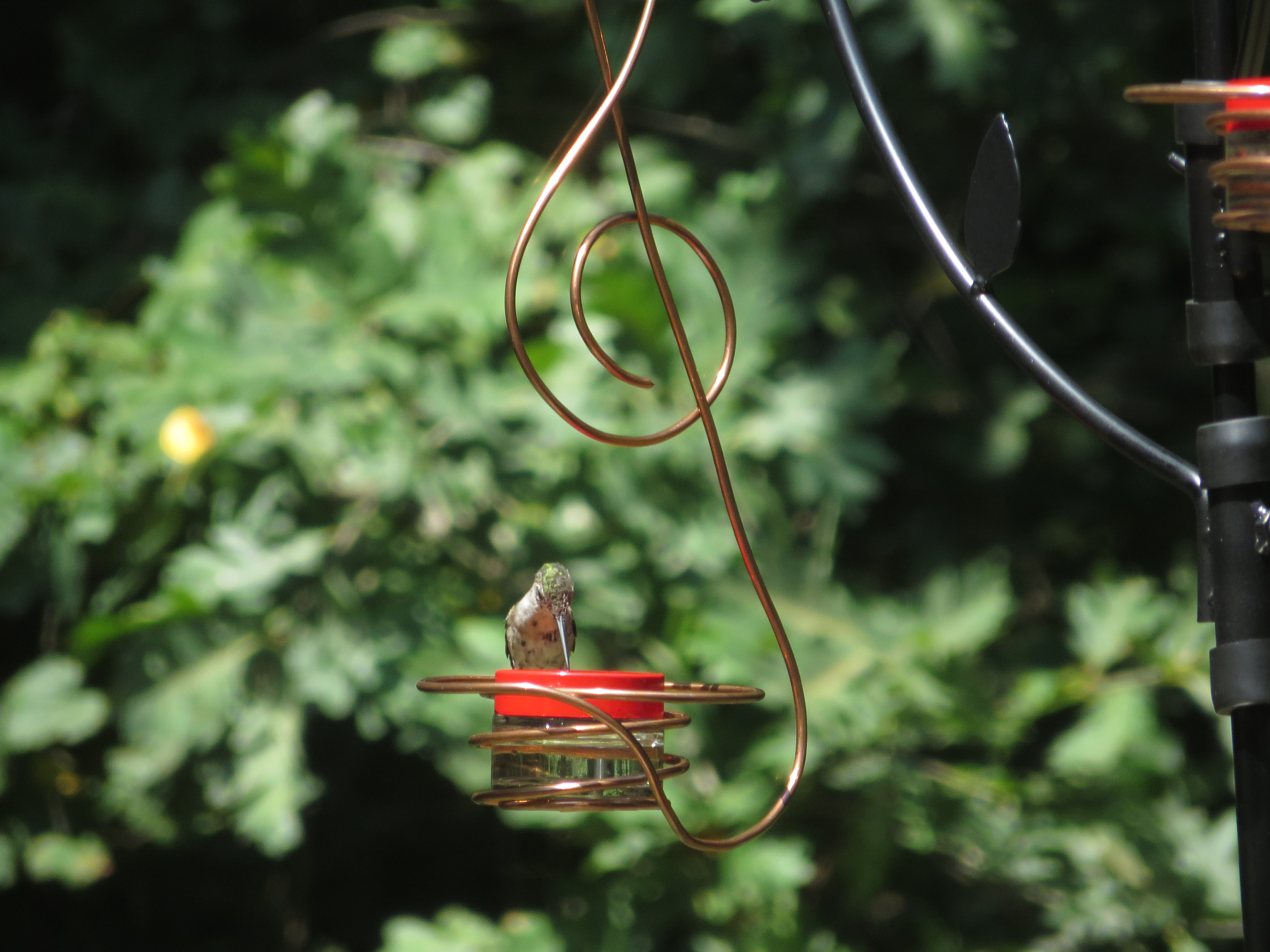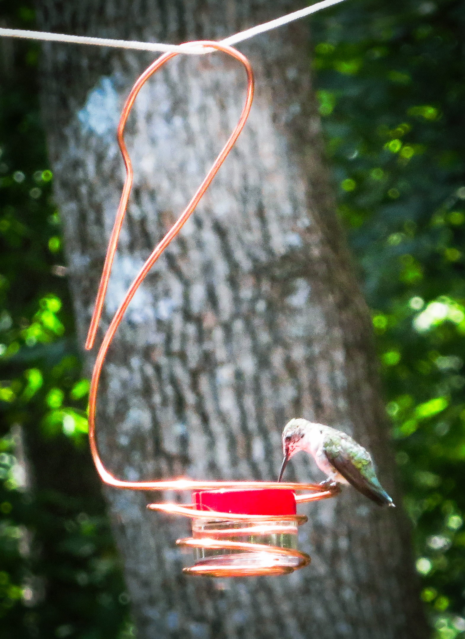 Enjoy the sparkle of glass and copper as your hummingbirds are fueling up.